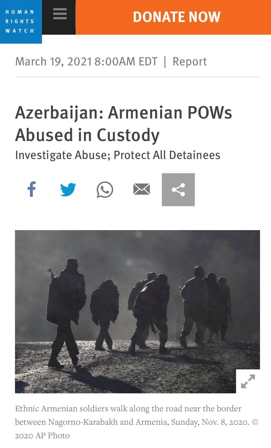 Watch իրավապաշտպան կազմակերպության հայտարարությունն Ադրբեջանում հայկական կողմի