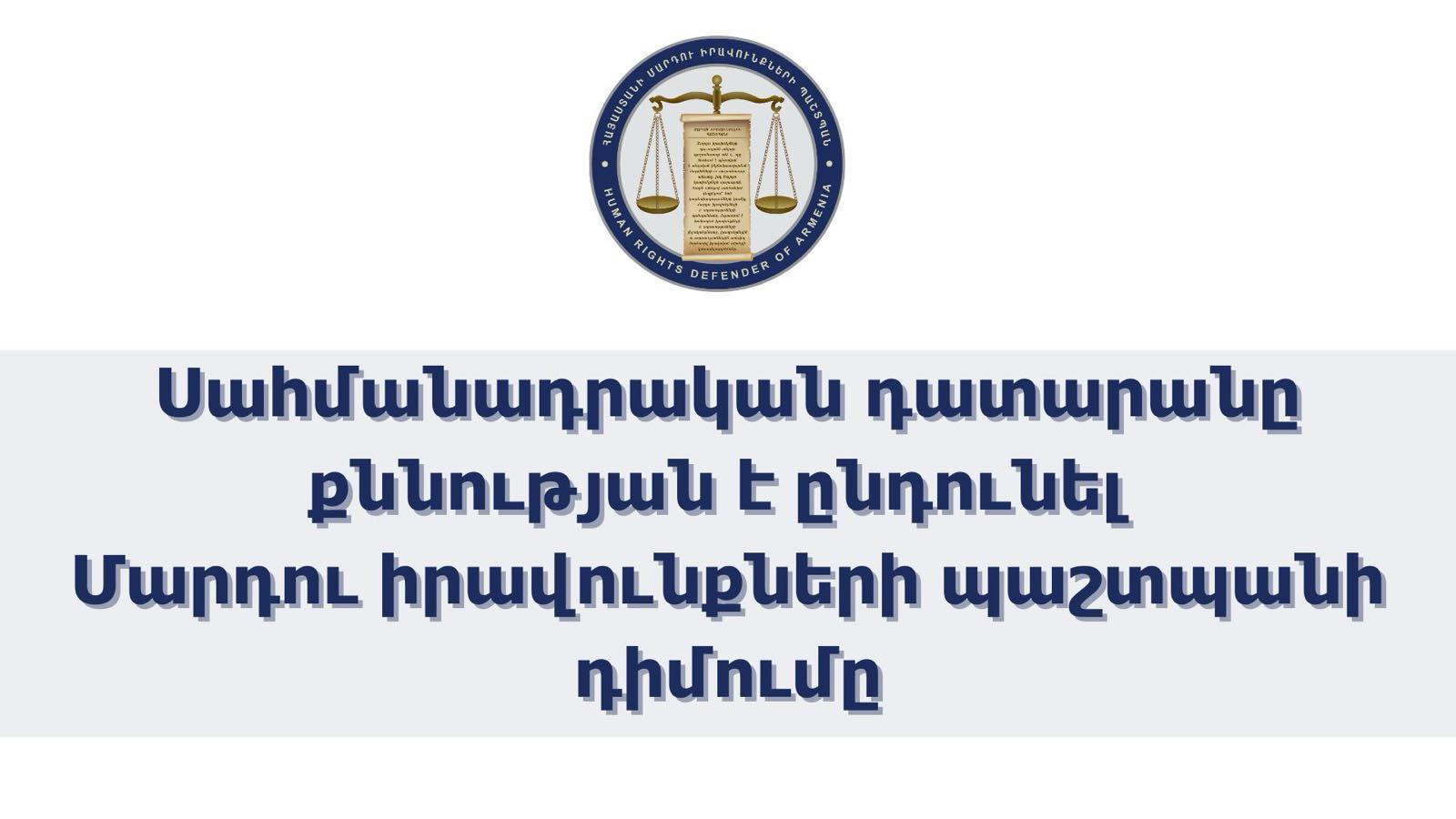 դատարանը քննության է ընդունել Մարդու իրավունքների պաշտպանի դիմումը: